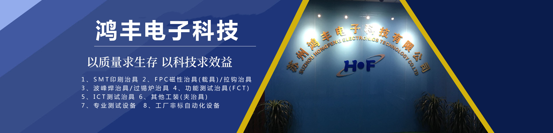 蘇州鴻豐電子科技是一家專業研發/生產:工裝夾具,波峰焊治具,回流焊治具,SMT印刷貼片治具,FPC磁性治具,氣動壓合治具,熱熔治具,氣密性測試設備,精密零部件,ICT测试治具,FCT測試治具,半自動/全自動測試治具,自動化測試設備,ICT測試设备,FCT动态測試设备,PRO烧录设备,非標自動化設備:公司業務涵蓋手機/家用電器,汽車電子,LED照明,液晶顯示,新能源,機器人,航太製造,智慧裝備等領域